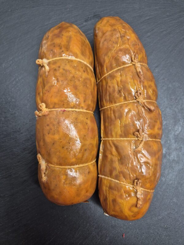 Andouille de cheval x2 : Version double pack de l’andouille fumée de cheval. Même recette artisanale : viande et abats de cheval, fumage au bois naturel. Parfaite pour les amateurs de charcuterie authentique. Plus économique en lot.